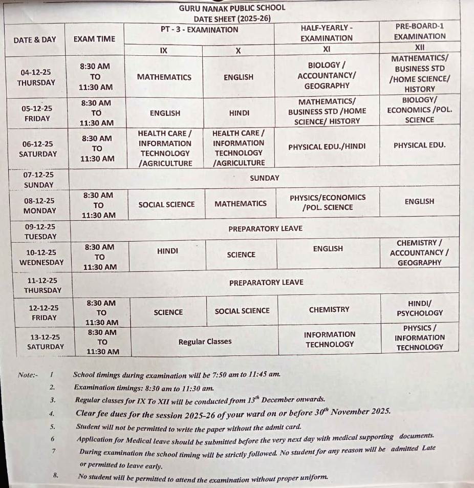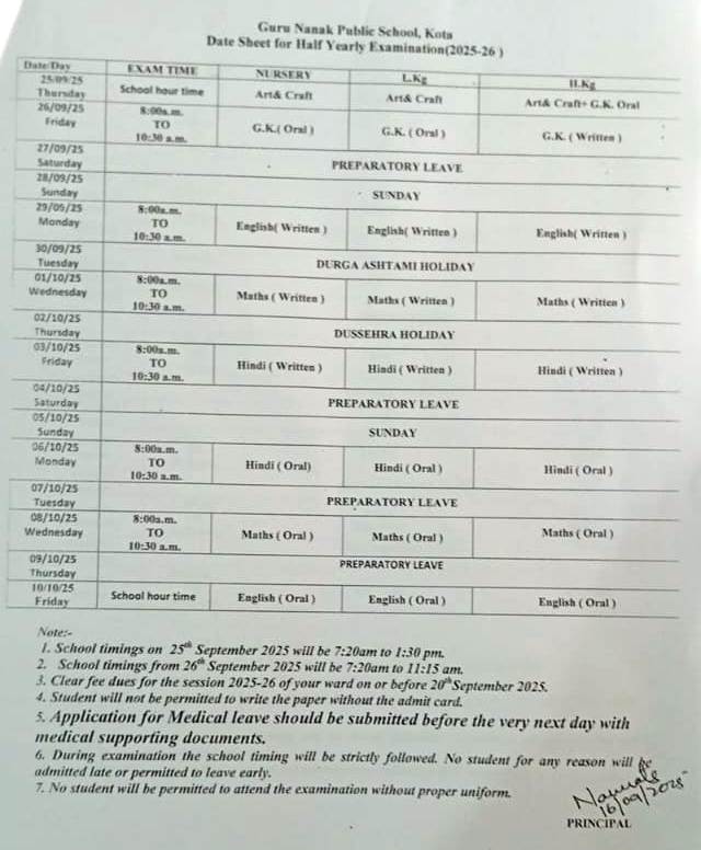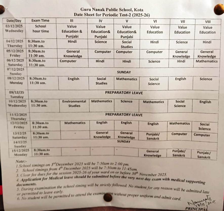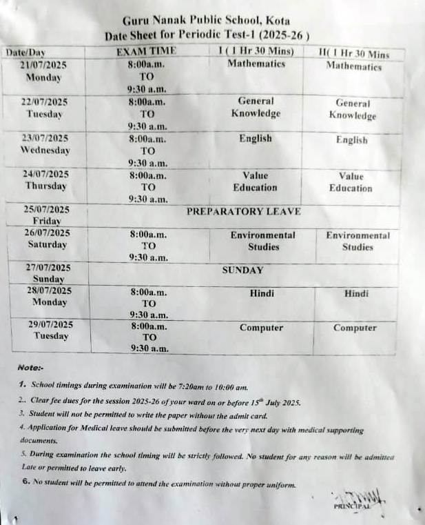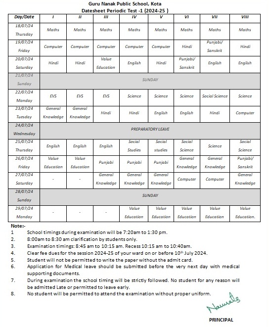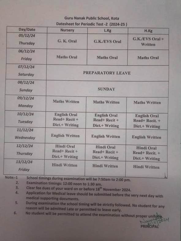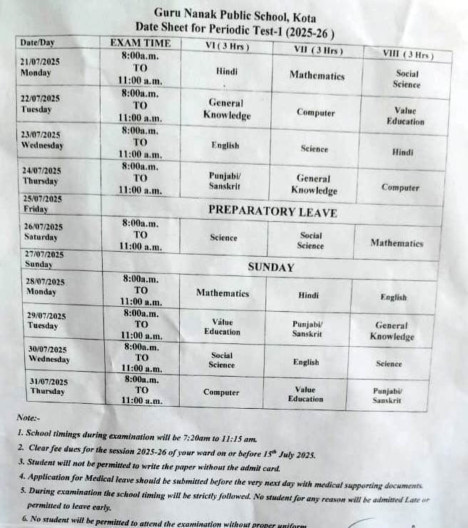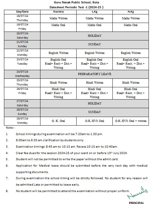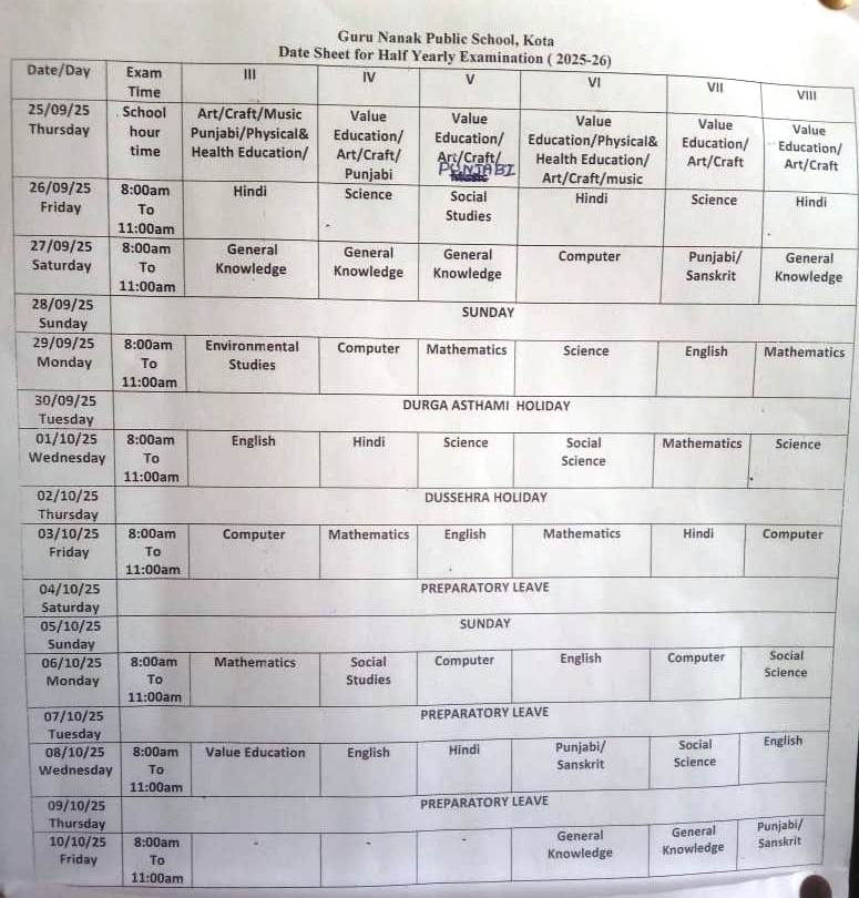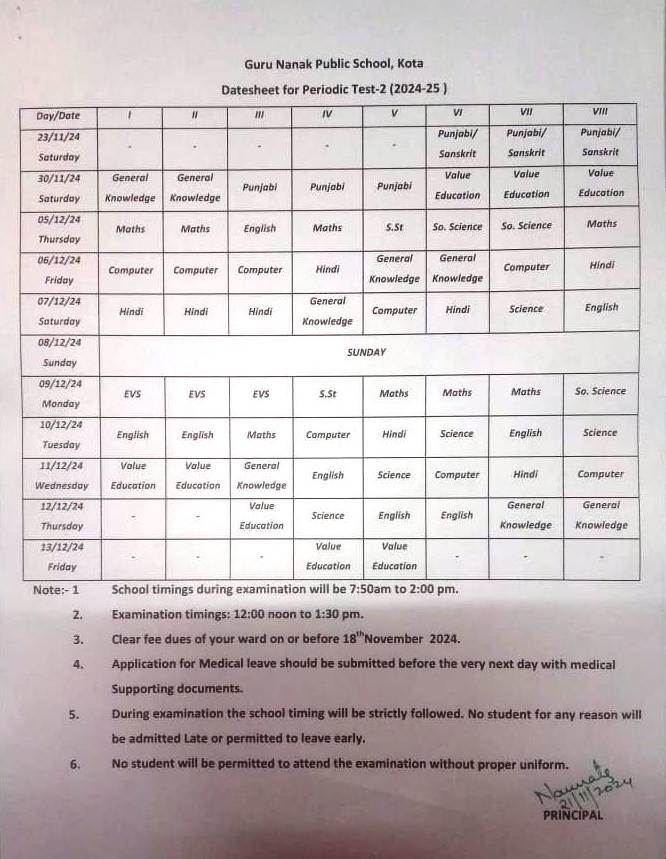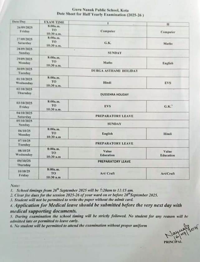 One time admission fees (fee structure for all the classes available at school office)